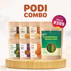 Podi Combo Pack Liferoots - Ellu Podi (Sesame Seed Lentil Powder)Liferoots - Idly PodiLiferoots - Karuveppilai Podi (Curry Leaves Powder)Liferoots - Kollu podi (Horse gram Powder)Liferoots - Paruppu PodiLiferoots - Poondu...
